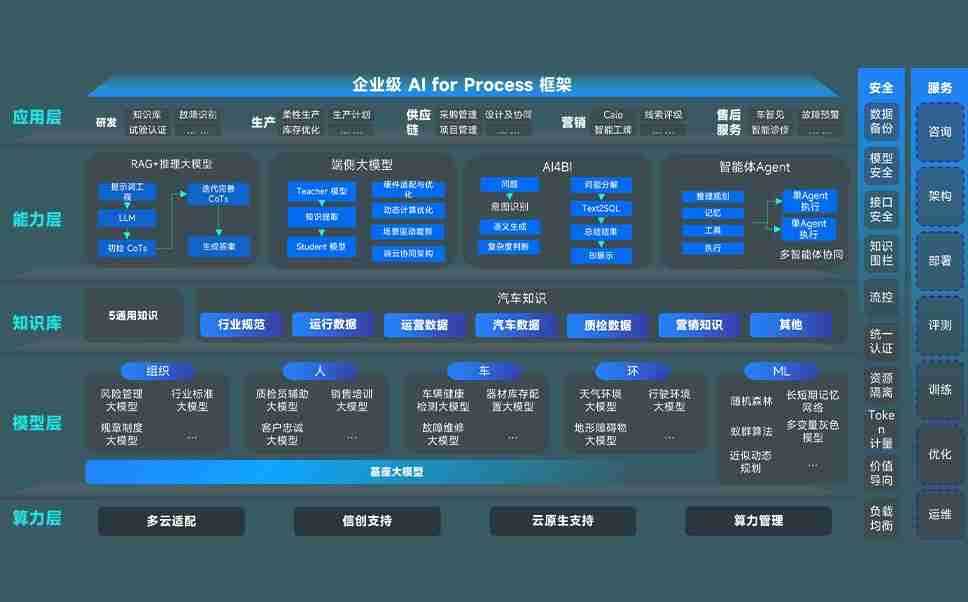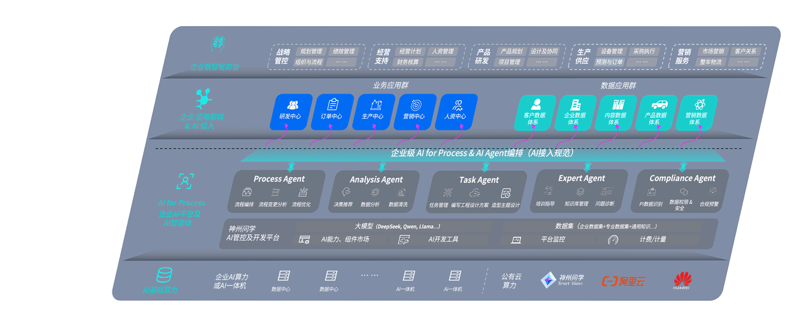 端到端的一站式AI工作空间深度融合了从企业战略规划到日常经营的全流程业务板块,,定向解决车企内部领域多、、部门多、、、、链条长、、、场景碎片化等难题,,,,支持车企快速构建以AI为核心的生产力写作体系,,,,实现任务执行与AI能力的无缝集成与交互